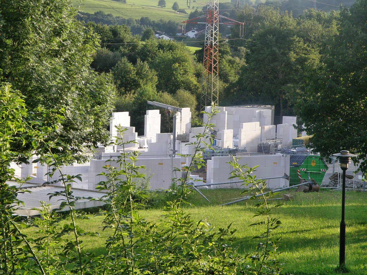 01.08.2017 – Nun geht es mit Hochdruck in die Vertikale! Immer deutlicher zeichnet sich der Baukörper ab. Die Wände werden mit energetisch wertvollen Leichtbausteinen hochgezogen.
